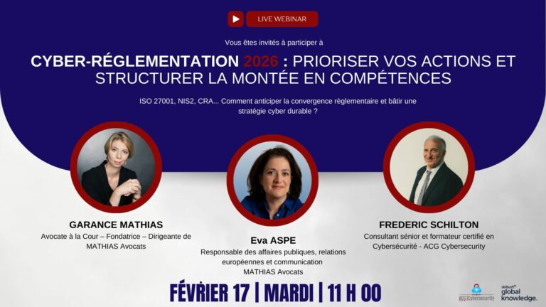 Ce webinaire, animé par Frédéric SCHILTON et Garance MATHIAS, vous apporte une vision claire des impacts réglementaires de 2026 et vous guide pour bâtir une stratégie cyber durable, en connectant l’IT et les RH autour d’un plan de montée en compétences efficace et finançable.